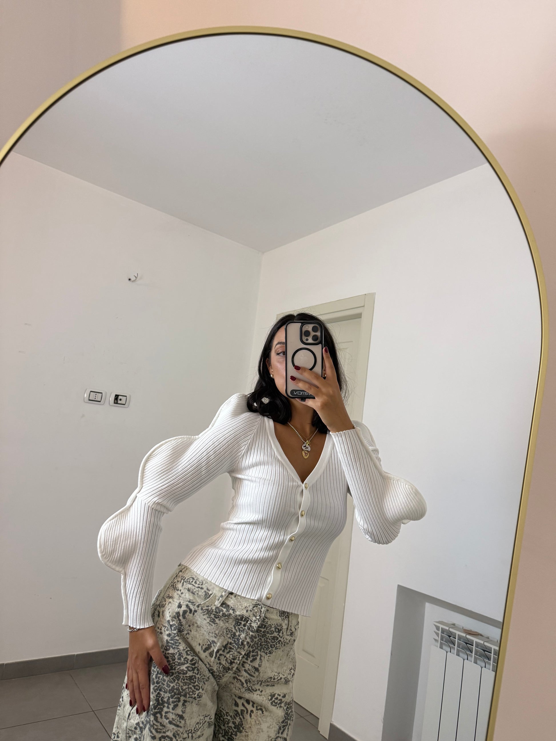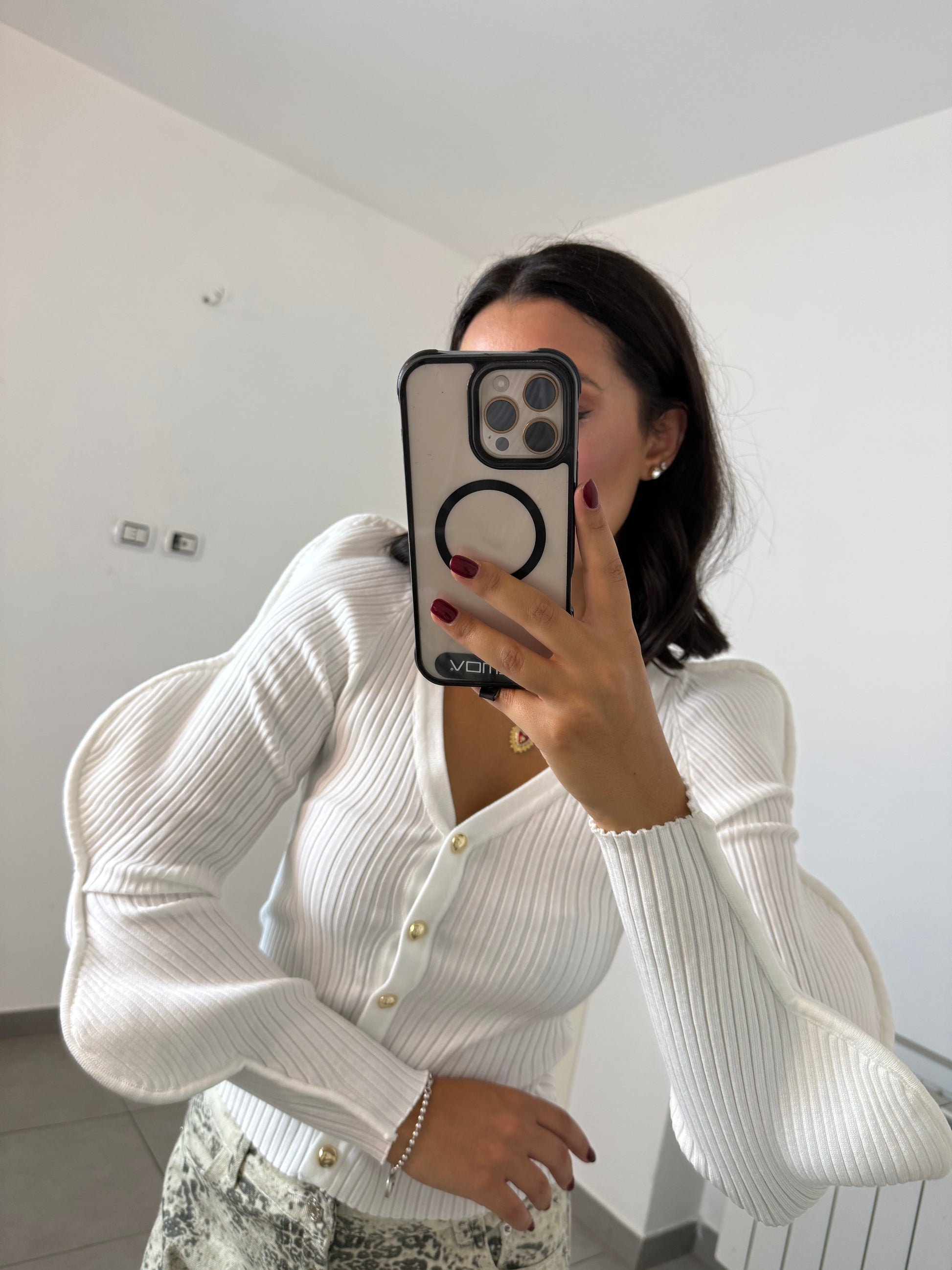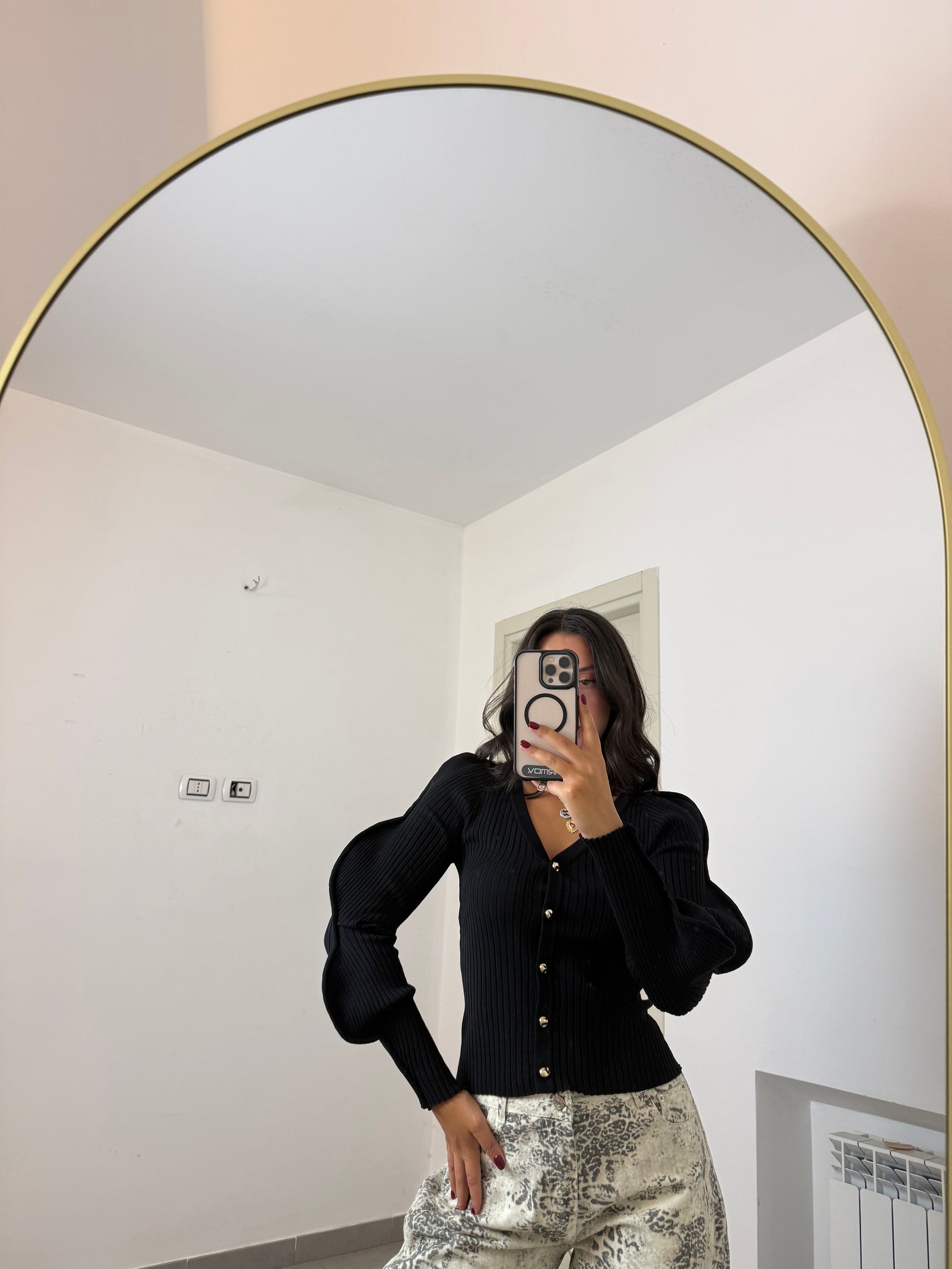 Chiusura con bottoni piccoli anteriori dorati