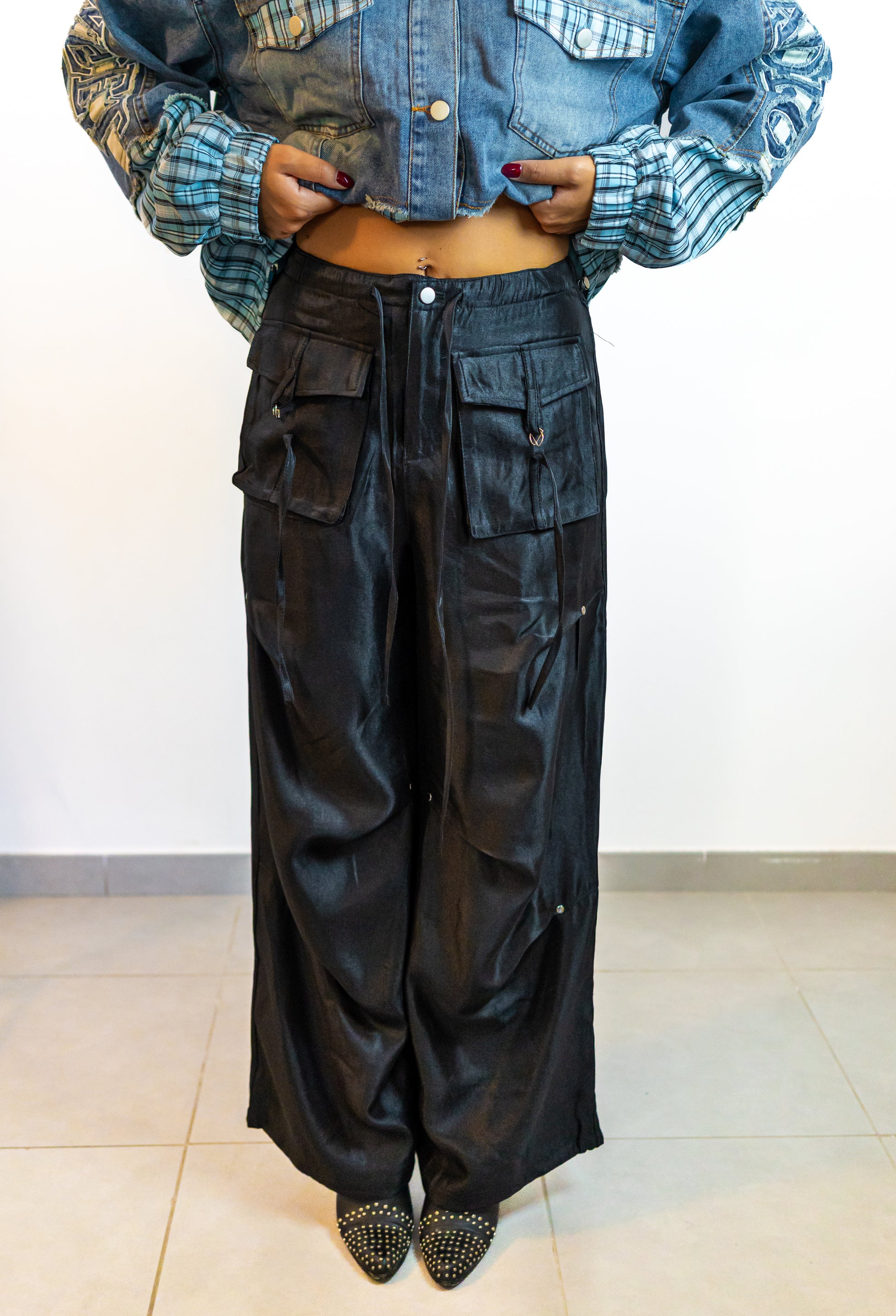 Cargo satinato con tasche anteriori