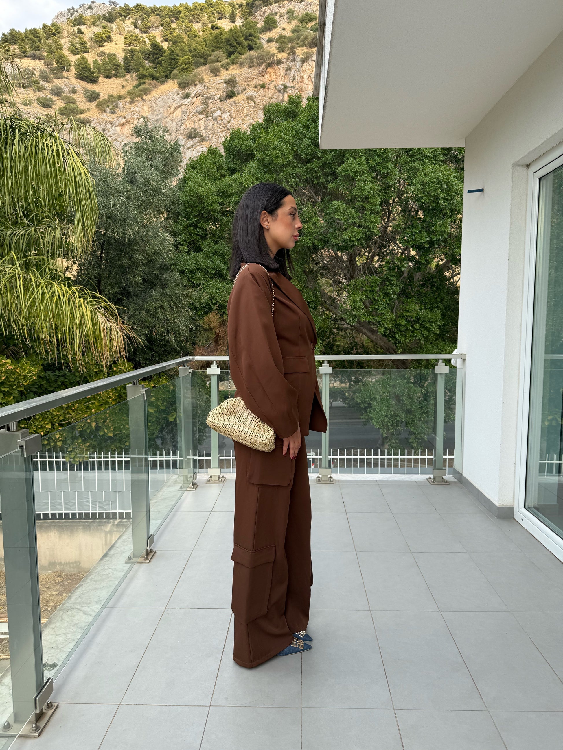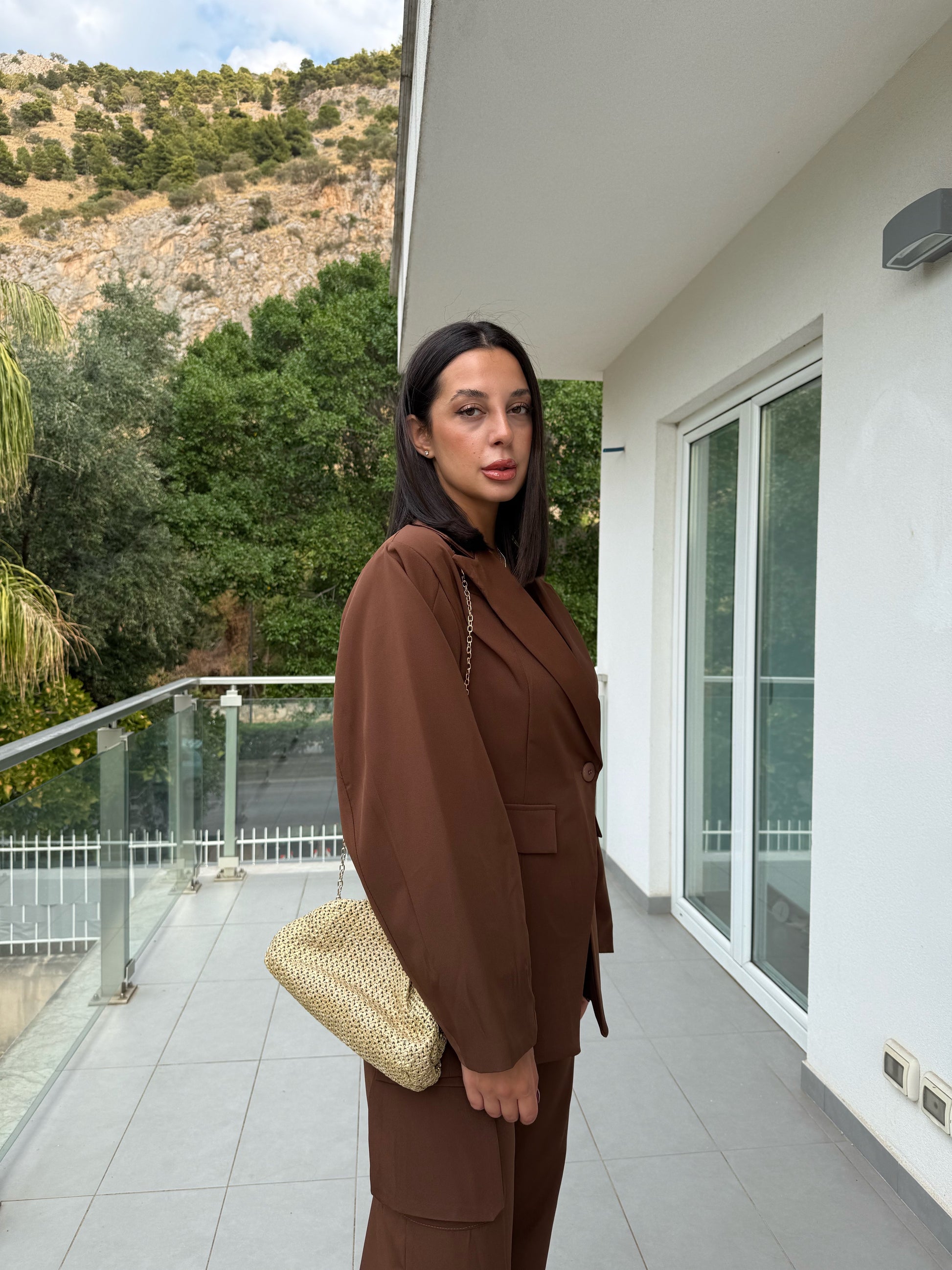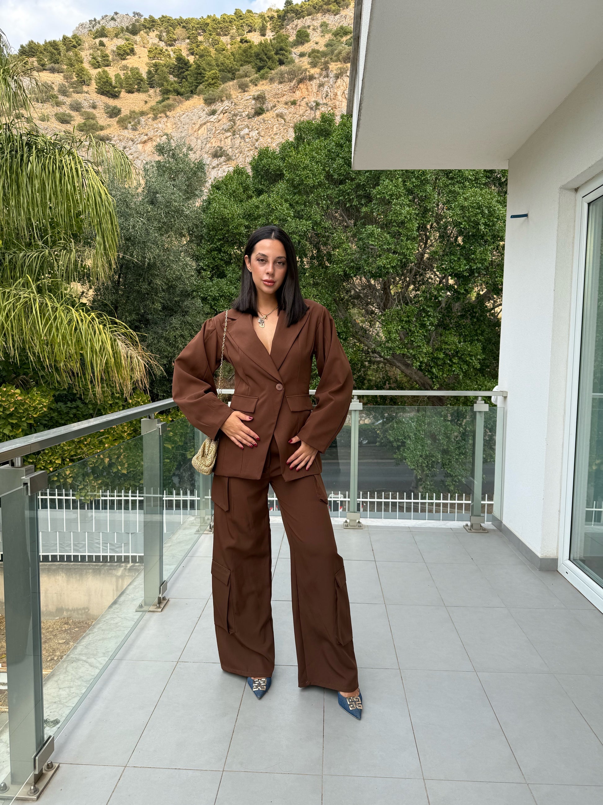 pantalone con chiusura bottone e cerniera anteriore ed elastico in vita sul retro