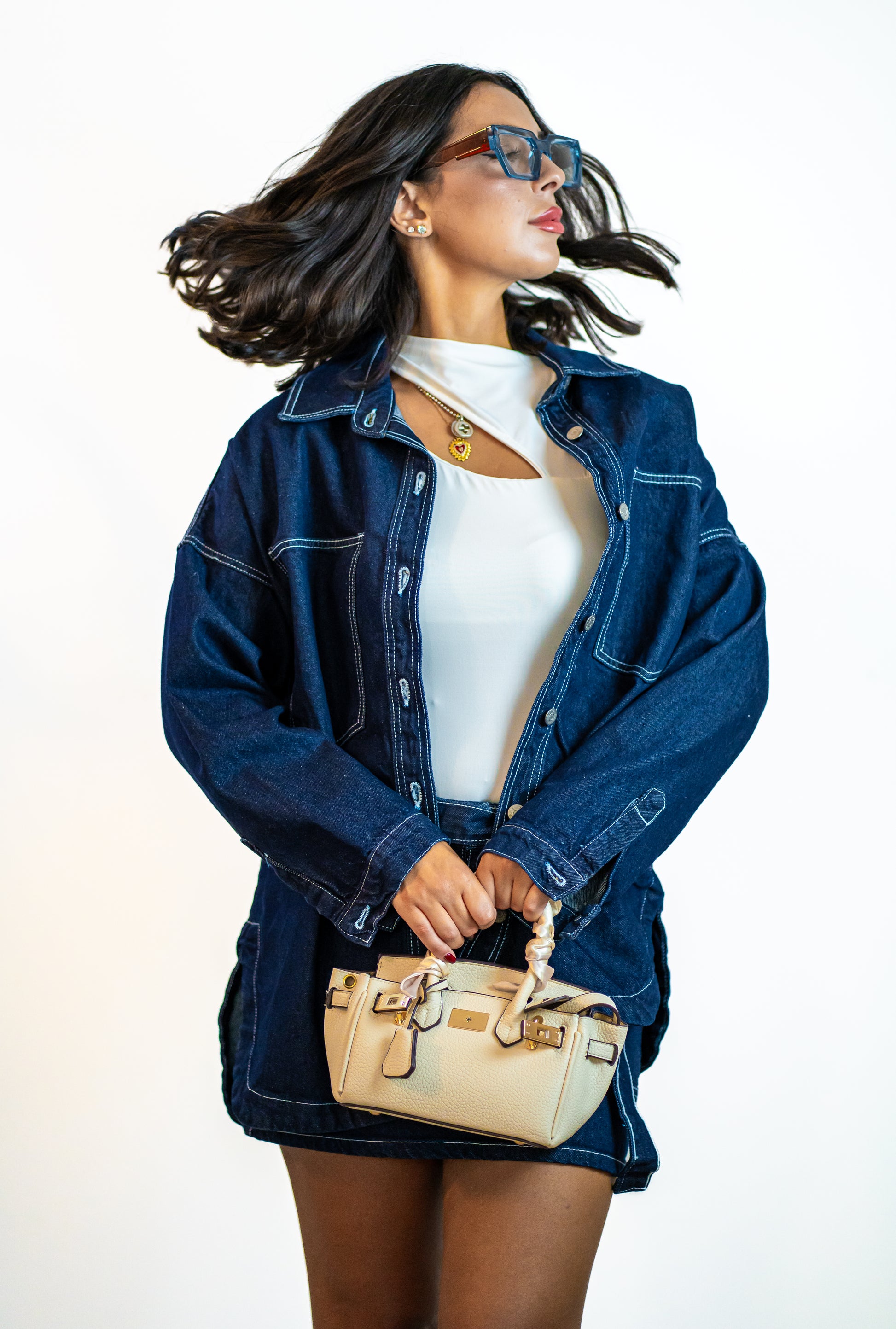 Giacca over taglia unica con bottoni,tasche e cuciture a contrasto