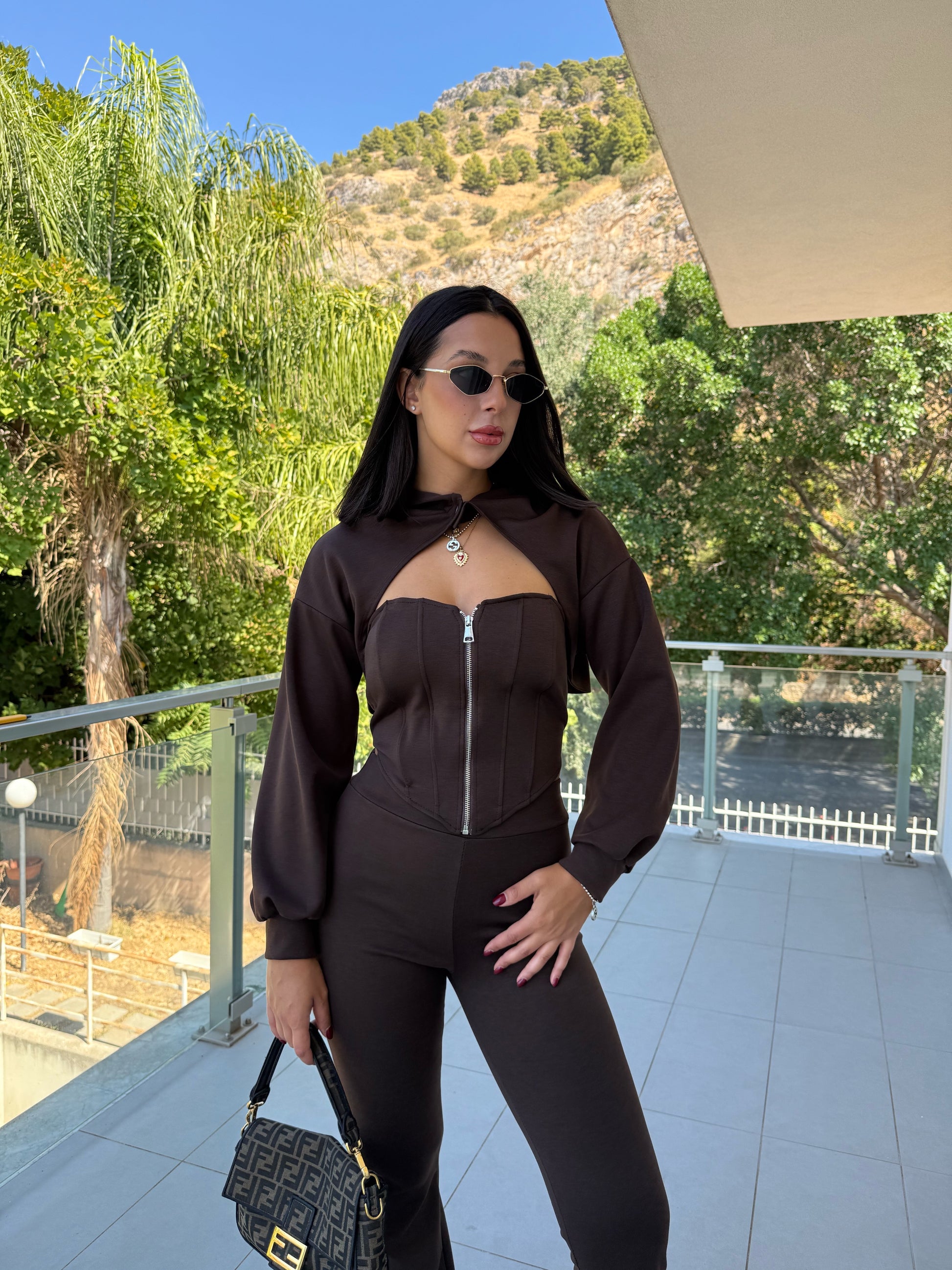scaldacuore con chiusura bottone al collo cappuccio e polsini