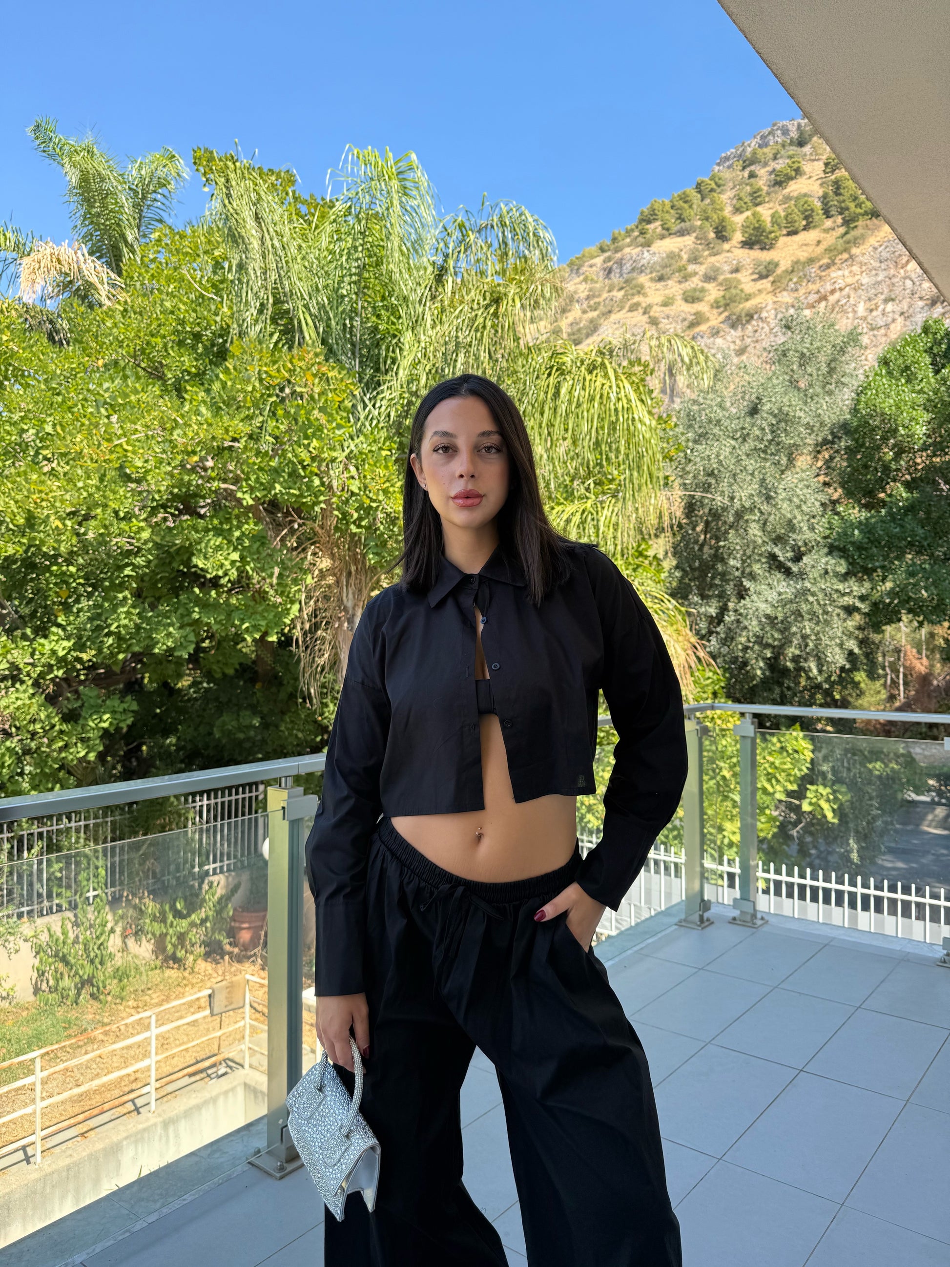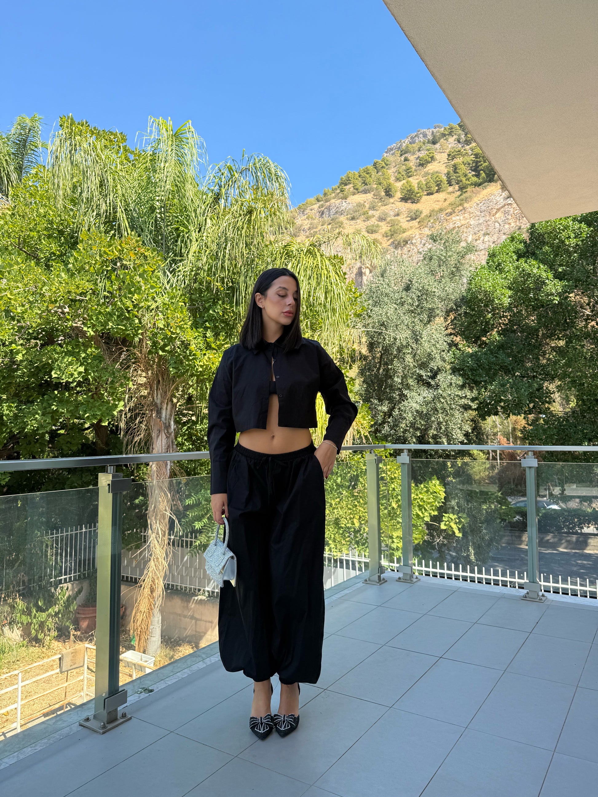 pantalone balloon con elastico arricciato in vita e sulle caviglie