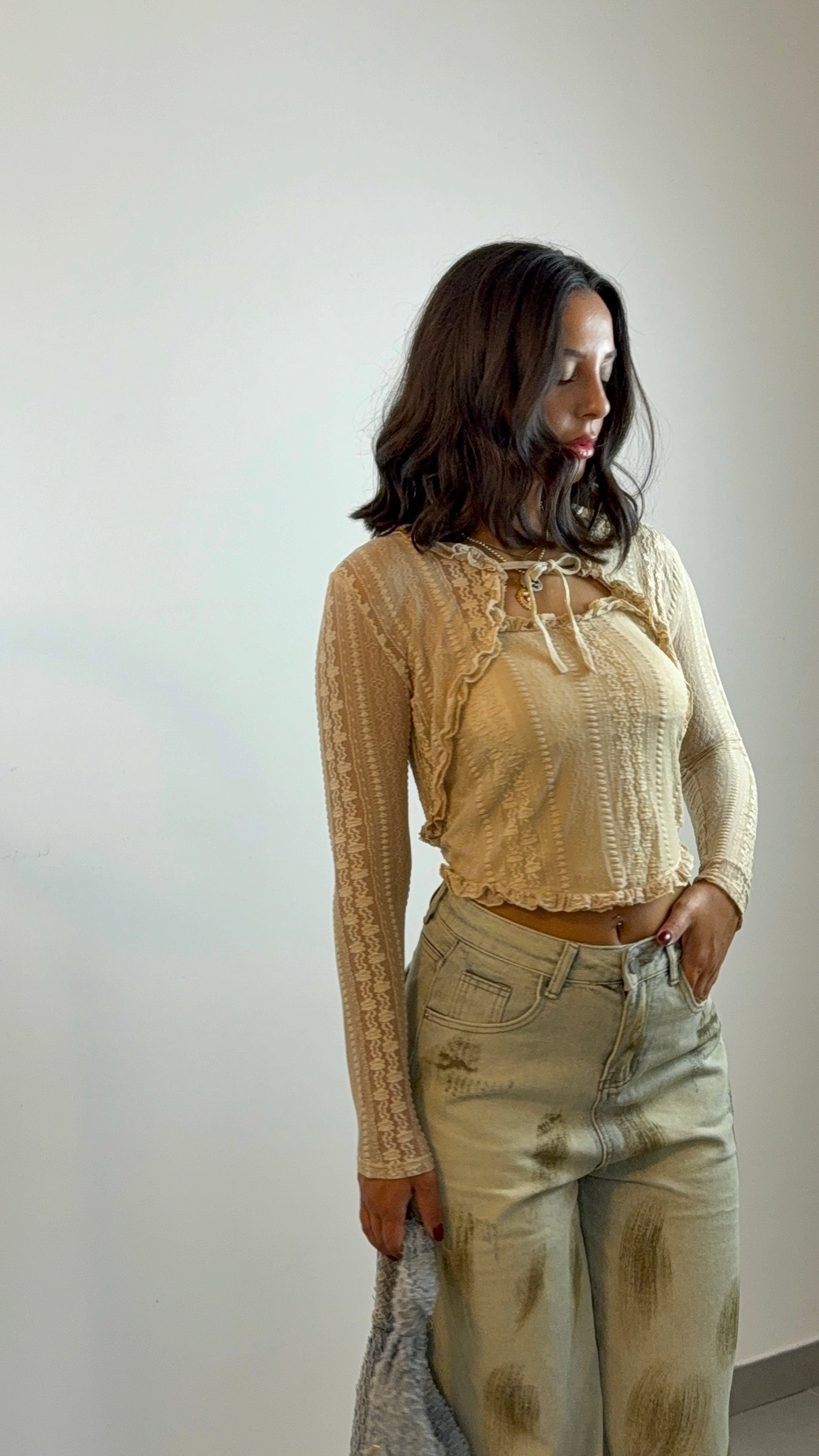 cardig pizzo con lavorazione a costine verticali